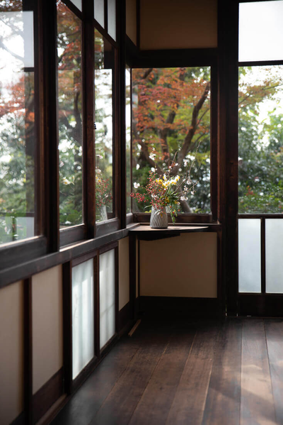 在住宅内部,可以清晰地感受到藤井厚二对于环境理念、理想住宅的思考与诠释,从开放式的走廊、视线齐平的榻榻米和座椅,到专为观赏京都五山送火的活动而设计的二楼小室,无不彰显着他对实际居住体验的洞察与精准表达。如今,这个日式与西洋共生的空间成为了一个用于收集展示实用艺术和北欧家具的画廊,面向游人开放参观。