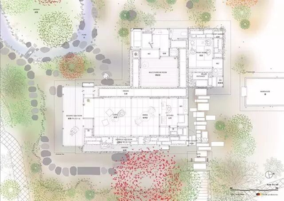 年为其同事设计的一座双层木结构瓦顶住宅,建筑的外观设计简洁而深邃,错落有致的挑檐和屋顶层次组成了一幅复杂而典雅的视觉构图,充分展现了日本传统美学以及玻璃等现代材料的融合运用。