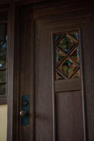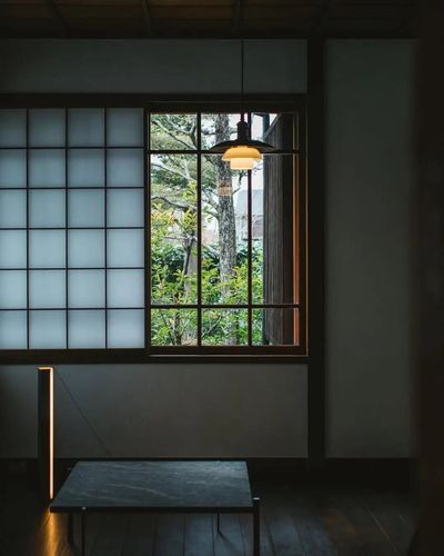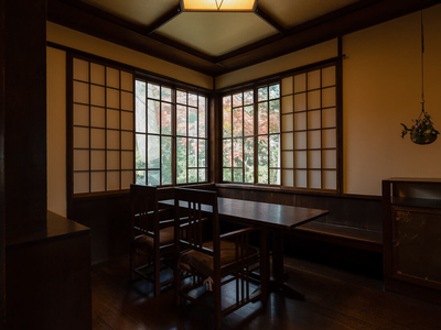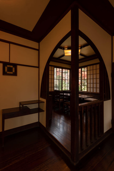 ,建筑学者普遍认为下半部分的“心”指代内心及精神,而在藤井厚二的空间中,门窗洞口的切割造型也恰好印证了这一点。就窗户的设计而言,其整体造型与视线交互使得原本并不宽敞的空间显得开阔而深邃,在餐厅等多处引导人们看向空间的对角线,为原本严谨的构图增加了一丝不确定性。