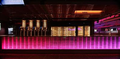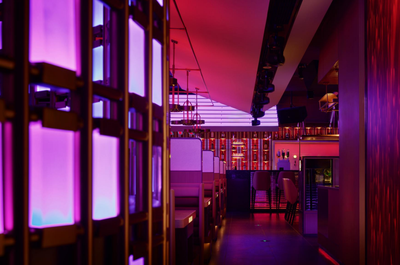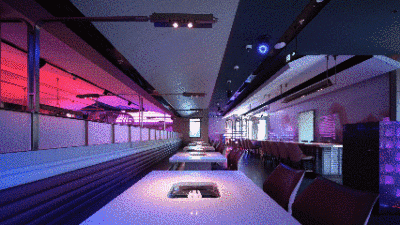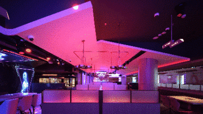 Through dynamic lighting, sound, and visual effects, the space transforms from an urban living room into a vibrant social stage—where light highlights clinking glasses and shared moments.