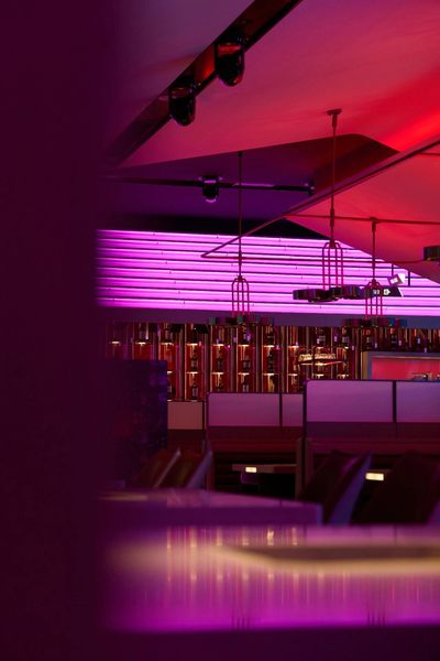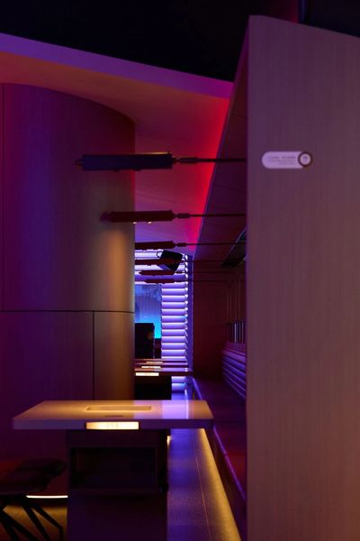 通过声光电的营造,激活社交娱乐和传播属性,灯光聚焦于觥筹交错之间,整个空间从“城市客厅”瞬间切换为充满松弛感与娱乐精神的“聚场”。