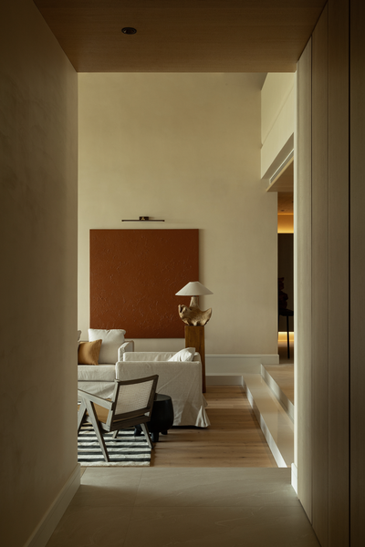 天花体块变形重塑功能性,将旧日繁复杂乱的风口及点位都隐藏干净。