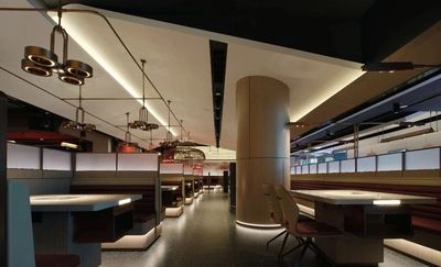 我们打破了传统餐厅扁平化的布局,将整个空间视为一个“微缩城市”。