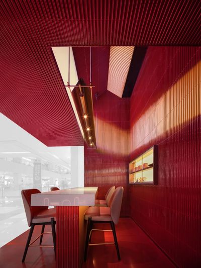 The most revolutionary material language lies in our use of “kiln-fired brick red”—not merely an extension of the brand color,but a tangible expression of craftsmanship,adding depth and dimension to the space.