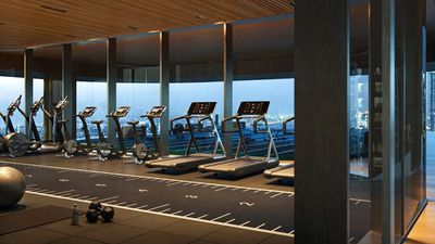 塔楼中段置入高端会所、健身中心等服务功能,通过大尺度悬挑平台的空间形式,让使用者的空间感受从室内向室外极限延伸。