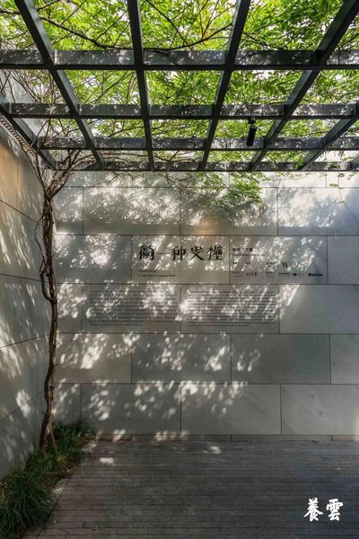 入口处,我们保留了庭院的屋架与藤蔓,透过绿意洒落下的光影会在庭院古墙的肌理上游走。同时,我们通过入口的连廊与密集的转折营造出一种收缩感,借助庭院本身的游园体验,营造出一种由收至放的转换,将自然肌理与历史记忆的交叠,作为展览的开端。