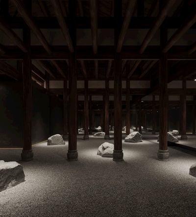 The ground floor of the main building presents the "Tiānxiàng" series, with thirteen stones dispersed throughout the space and a winding gravel path guiding the way.