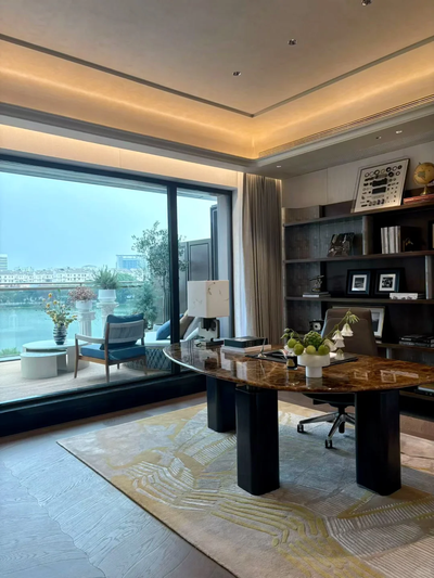 建筑立面由gad大师团队执笔,以创新曲面屏结合高级灰玻璃,勾勒如湖波流转的现代线条。超大玻璃幕墙占比,270°无柱环幕视界,引景入室,筑就收藏风景的立体画框。