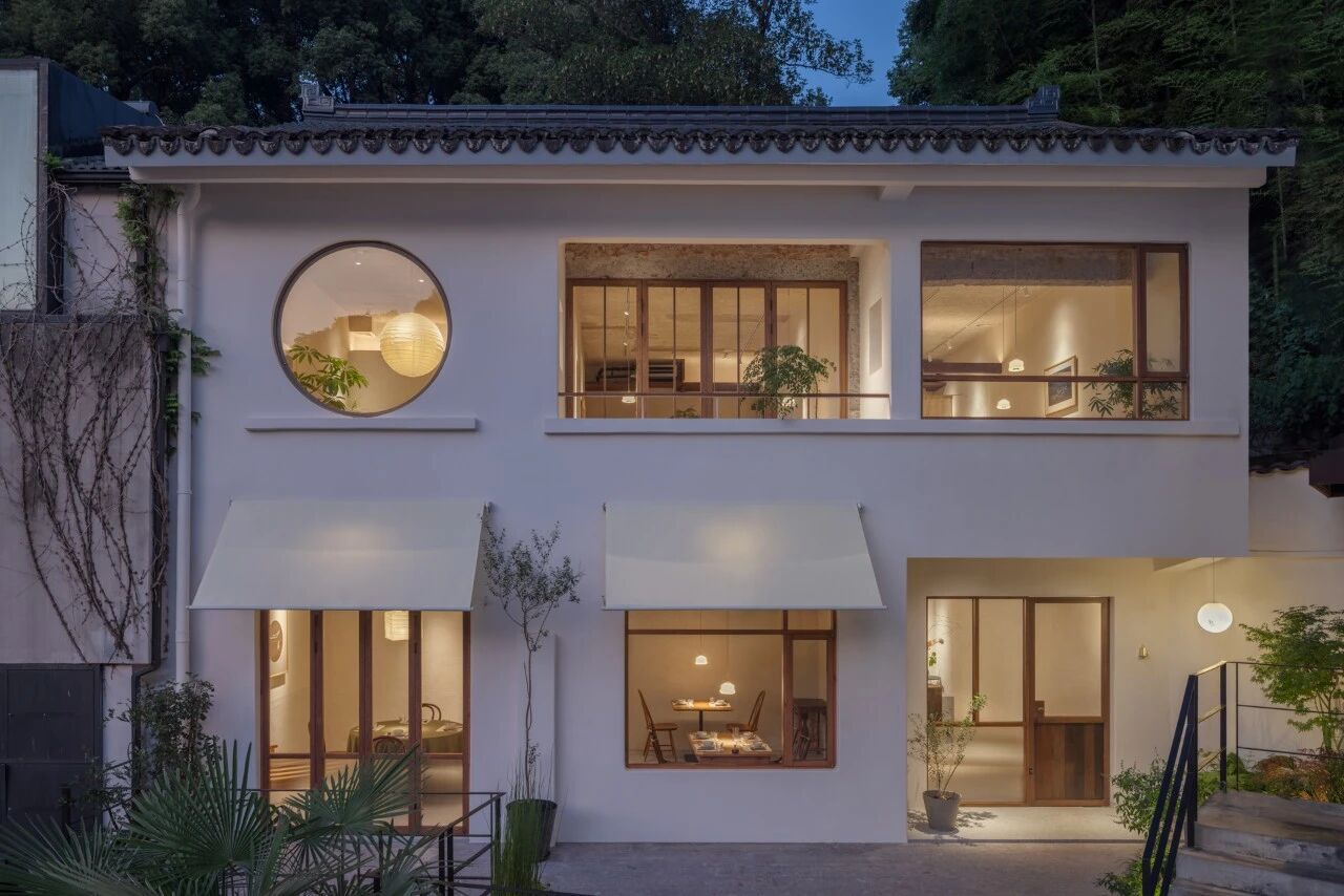 在江南园林中,门窗之间仿佛漏大千世界,收风月无边。“桂”餐厅采取白墙黑瓦,木制门框,搭配圆形、方形开窗,一窗一景致,一窗一风韵,将周边群山之景引为大舞台,“桂”便是一个轻施粉黛的小家碧玉。