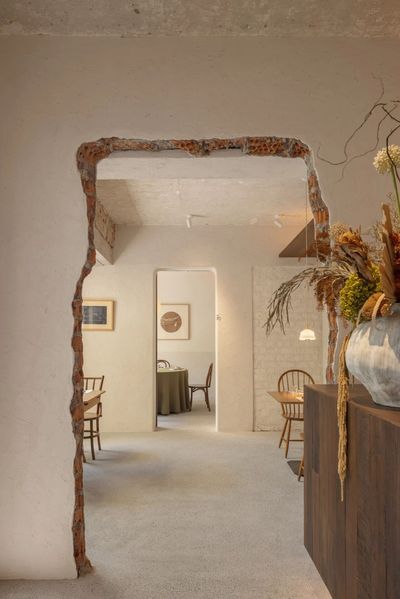 ▼ 工人偶然敲击出的不规则门洞,却意外有种简约的美