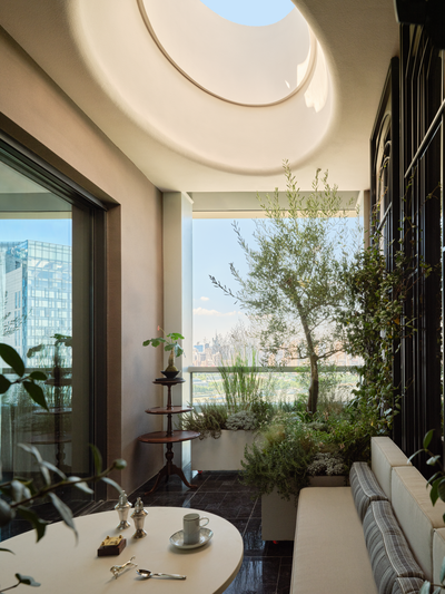 宴会厅内侧的X空间,团队将其设置为空中花园。我们希望这里不是社交场景的延伸,而是独属于家庭的自留地。家庭成员在这里吃早餐、喝咖啡,同时在家中也能感受到自然的接纳。