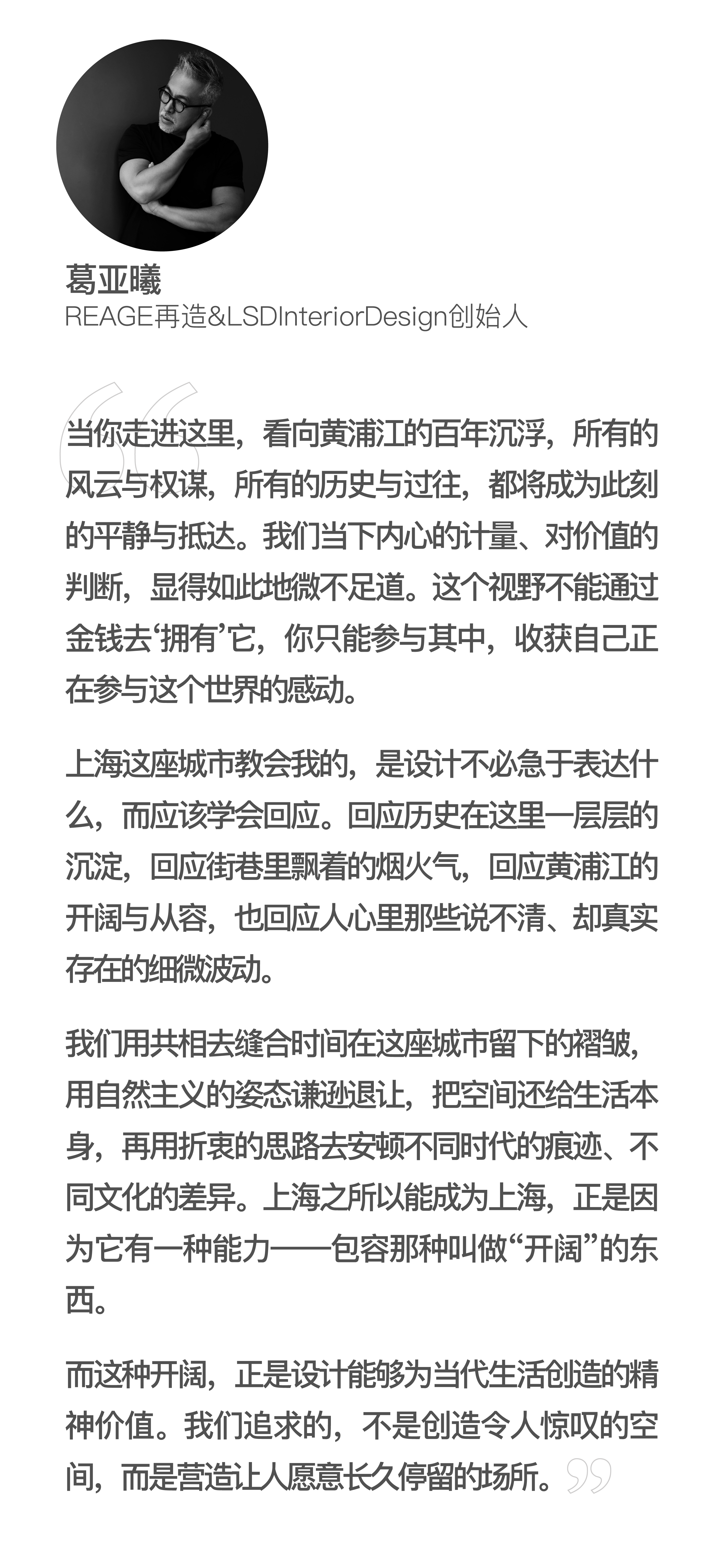 ○面向江景的部分,是LSD将建筑设计手法引入室内空间的重要部分,以此希望精神上的共鸣可以就此发生。