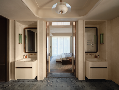 ○对称式布局洗手台,符合当下的生活使用习惯,同时也让空间具备美学要素。