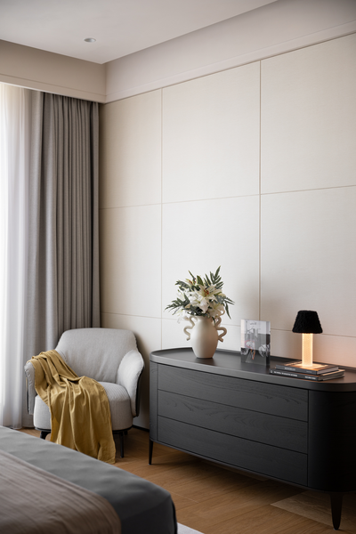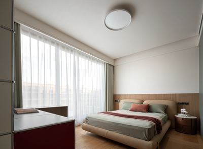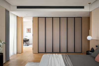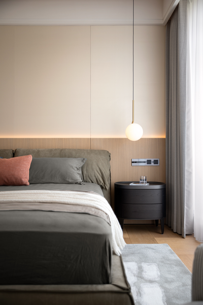 本案居住者是一个四口之家,设计师在卧室空间中,不仅着眼于功能与舒适,