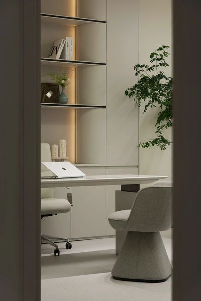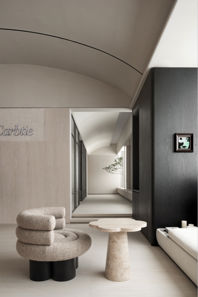 光,成为最昂贵的材料,漫溢而下,温润了微水泥的肌理,亦温润了初访者忐忑的心绪。此间,无喧哗之形,有宁静之力。我们重新定义医美空间。它不应是冰冷的技术容器,而应是一处专注于「人」的自然疗愈场。设计以「松弛治愈」为内核,摒弃一切工业化的紧张感与过度修饰,让空间成为光的容器、时间的画布,于无声中抚平焦虑,传递一种无压的信任感与蓬勃的有机生命力。