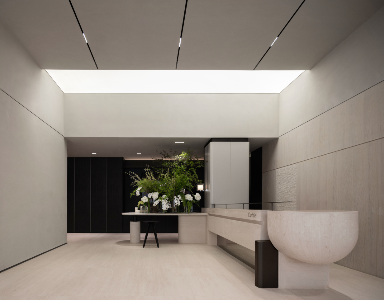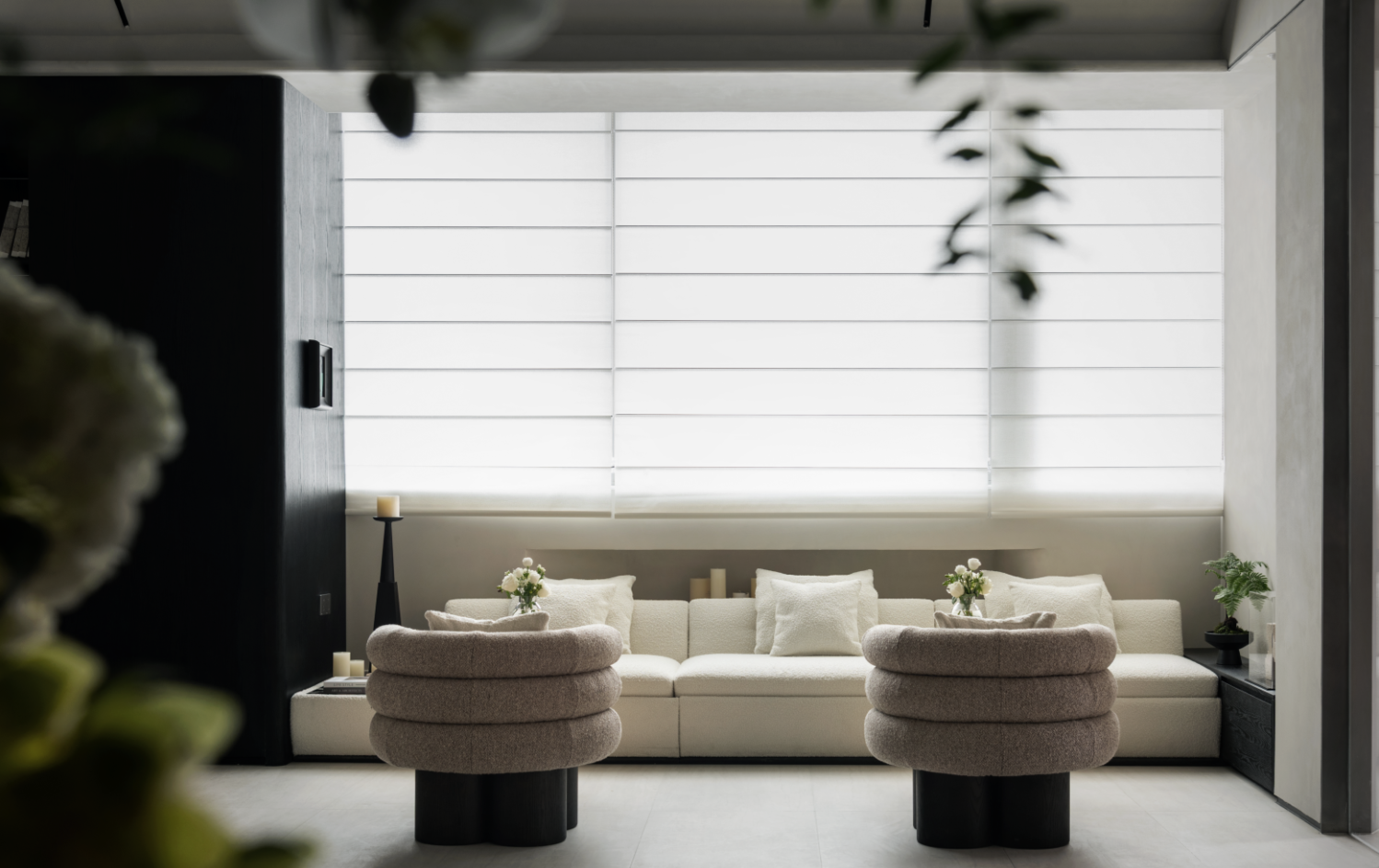 落笔于“减”与“留”。极简的力學结构,勾勒出宏阔的氣度,如同安藤忠雄清水混凝土的纯粹骨架。自然花艺并非装饰,而是空间内生的生命体,其恣意之态与建筑的绝对理性形成深邃对话。