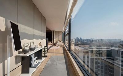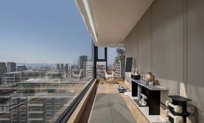 空间藏着一些“小惊喜角落”,拐弯区域的阳台对着优雅落地窗,巧妙提升更开阔视角。这里的空间与都市相置,由适当尺度重塑私人空间和公区的关系。