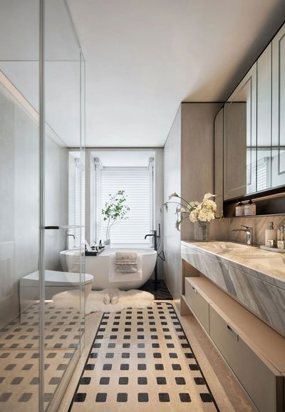 沐浴间和更衣室相互衔接,且通过合理的科学划分区域,融入多元化日常功能,打造更惬意的现代化日常。
