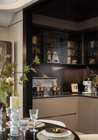 开放式烹饪厨房加入相对优雅精巧的室内设计,特色小摆件巧妙的把日常烟火气渲染得更具涵义。