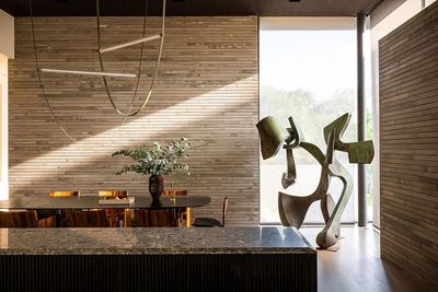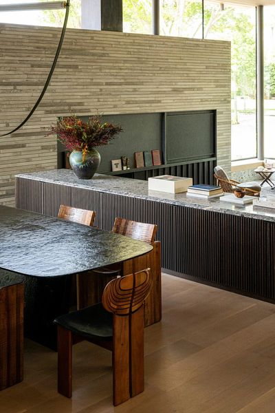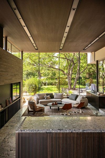 在住宅建筑领域,“现代风格” 往往等同于明亮、纯白与极简。但设计师深知,考虑到德克萨斯州充足的日照,以暗色调为基础的空间能营造出更宁静、平和的居住体验。