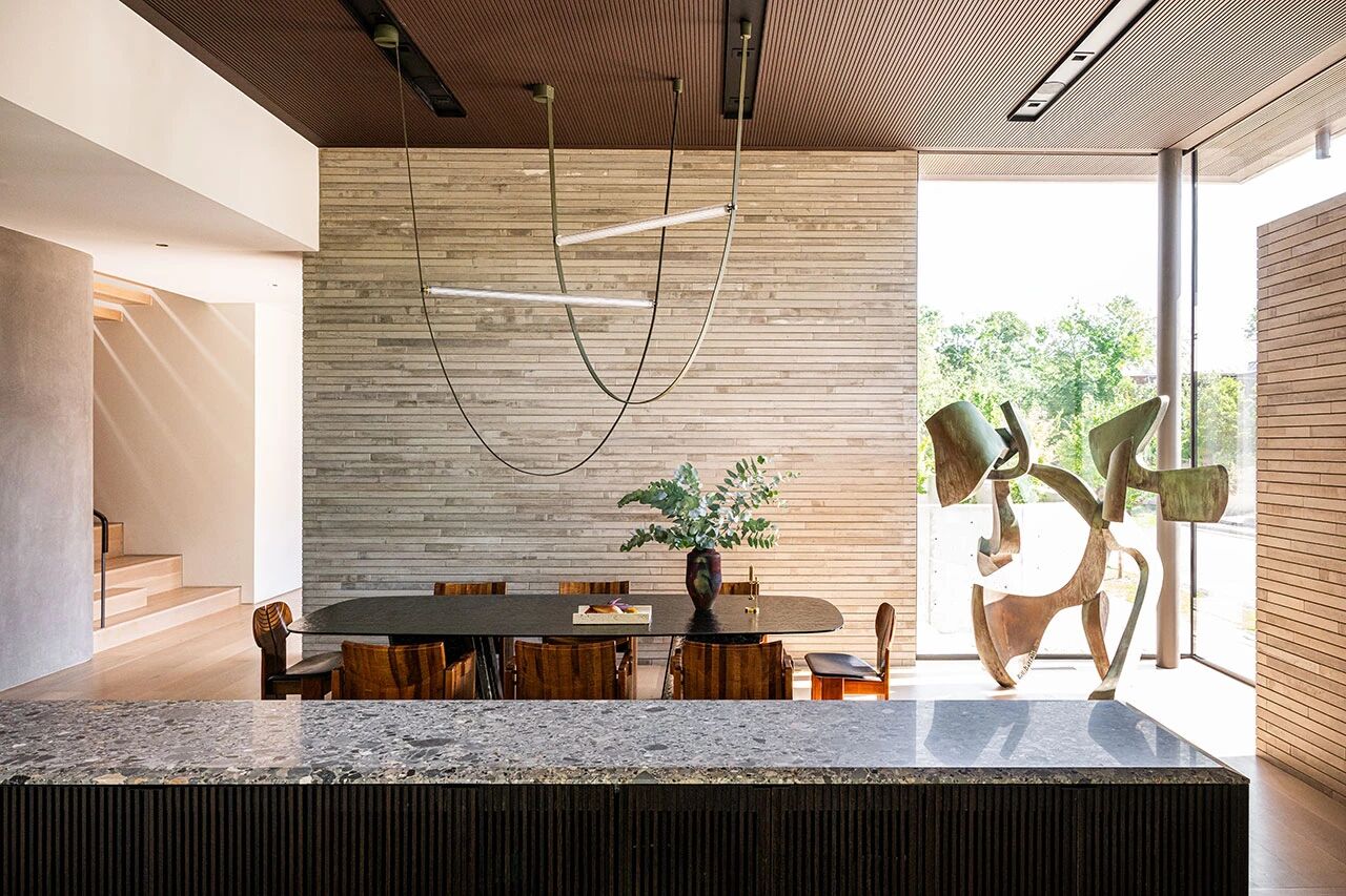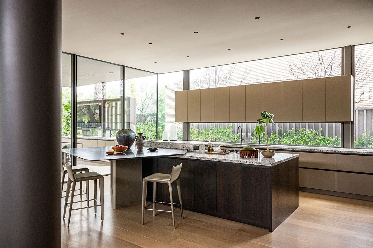 现代建筑设计往往借鉴现代主义理念 —— 如简洁的线条、开放式的布局、材质本真感等经典元素,并结合当下审美与需求进行优化调整。这座位于海兰帕克(Highland Park)的住宅便完全延续了这一设计脉络,其建筑设计由 SmithArc 事务所操刀,室内设计则出自约书亚・赖斯(Joshua Rice)之手。