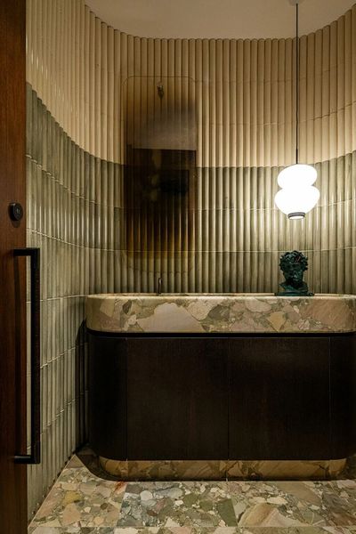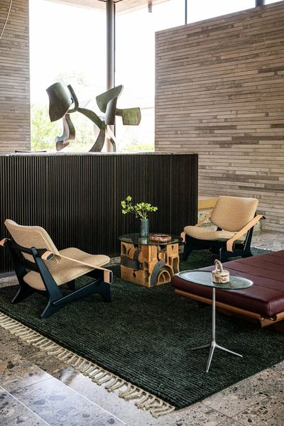 在赖斯的设计中,色彩并非点缀元素,而是建筑本身不可或缺的一部分 —— 它从石材的自然纹理、橡木的烟熏色调、瓷砖的矿物质感中自然流露。这种色彩运用具有结构性意义,而非单纯的装饰手段。
