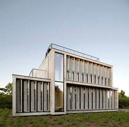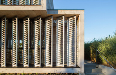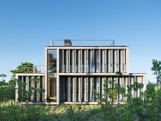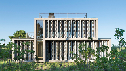 Amagansett Dunes House by Bates Masi is shaded with louvers