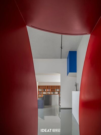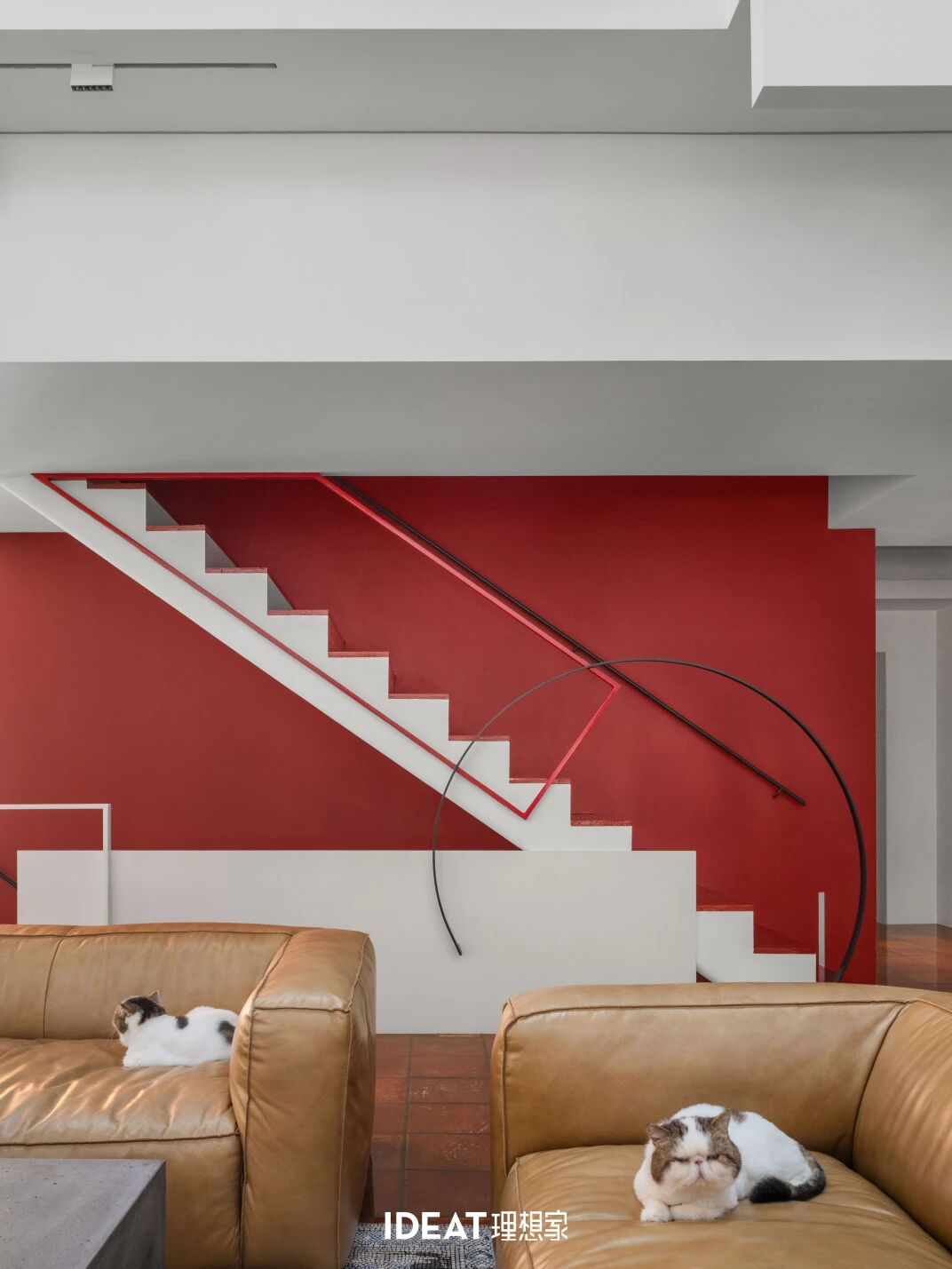 具有几何感的红色通道连接两个彼此独立的场所——王泉的自宅与第二宅。