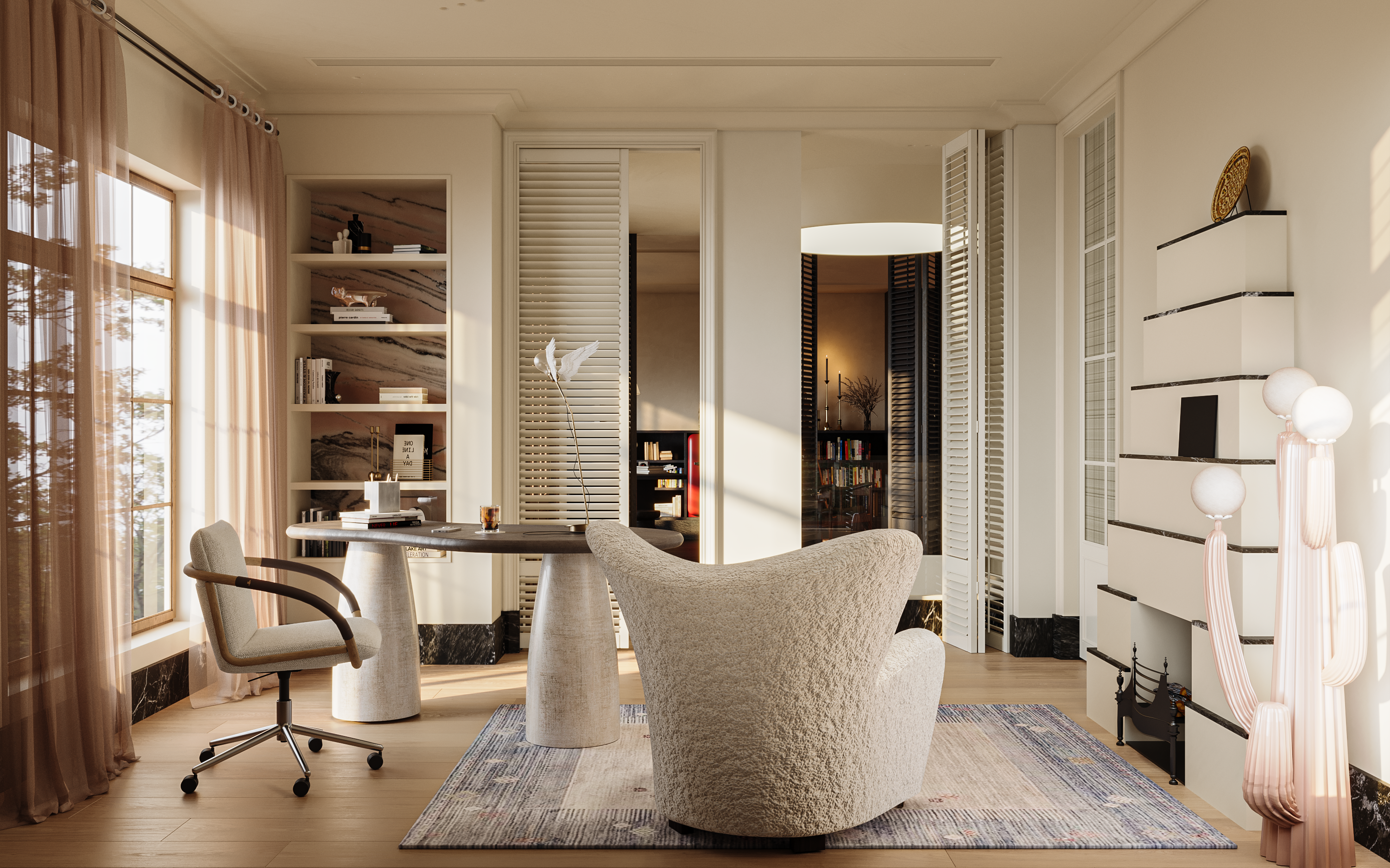 。客户看到我们为工作室的一盏灯、一块地毯反复打磨,也会更信任我们对他们家的细节把控。