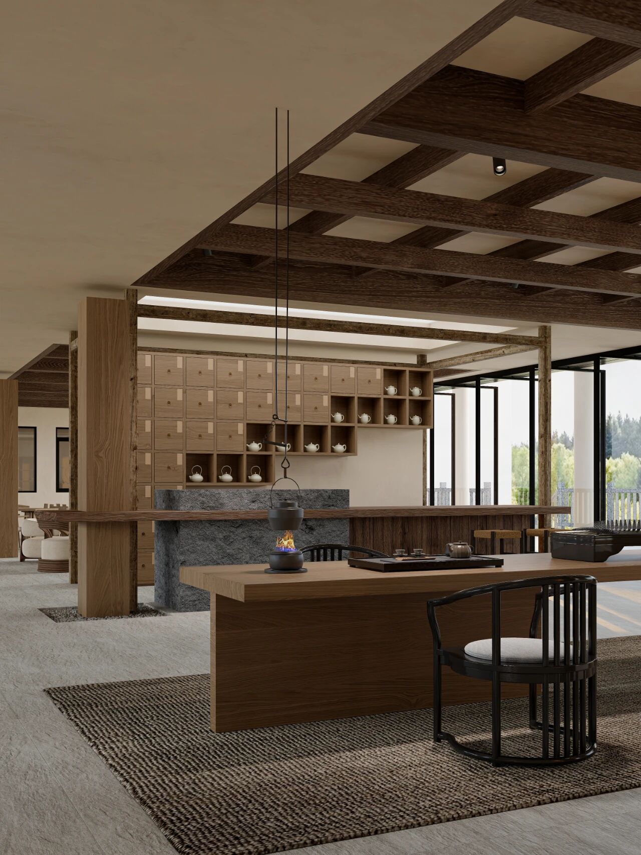 茶空间民宿,结合了传统茶文化和现代生活方式的创新住宿形式;