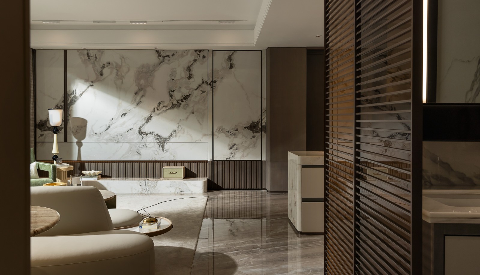 色彩与装饰形成递进层次,深沉不显压抑,反而将文化的含蓄与生活的诗意融合为一种高浓度的审美体验。这种张力不仅来自形式语言,更来自文化沉淀所带来的精神聚合,让空间本身成为承载美与情感的容器。