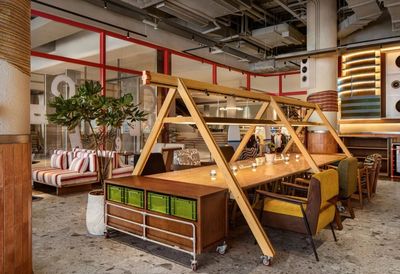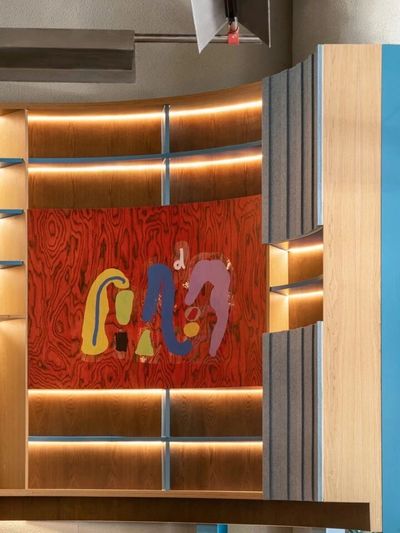 Boooard的空间整体是流动开放的,布局上使用环形动线,大量使用弧线的动线让空间更流畅,我们使用一条长型单边户型吧台加上背部立面的大型吊柜成为空间的主体和中心;再以入门处室内外衔接处的背靠背长椅与吧台前的区域、三角形的大长台为空间内的三个实体支点,形成整个场的虚实关系和层次感。