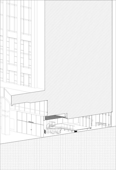 The overall structure is precise and orderly, outlining the spatial hierarchy with sharp lines and volumes, while breaking the conventional boundaries through the contrast of materials and colors, creating a unique hybrid aesthetic.