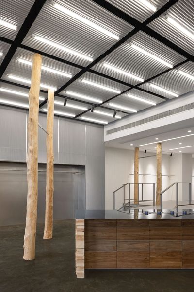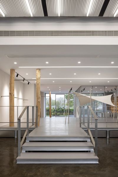The core concept is connection - the mobility of the outdoors and indoors merges to form a dynamic and interlocking spatial structure. The triangular structure of the façade looms large and becomes the dominant visual symbol throughout the space. This geometric construction not only emphasizes the precision of the metal material, but also incorporates the softness and fluidity of the organic fabric forms.
