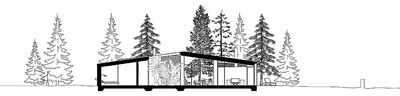 这座房子建在一个森林的地块中,周围是松树林。在他们的旅行中,