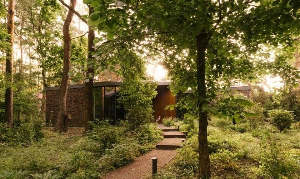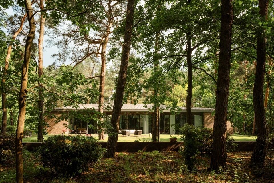 夫妇的积极参与,他们从一开始就参与了概念的塑造。因此,项目不仅响应了居民的实际需求,更反映了他们的个性。宽敞、光线充足的室内空间采用自然、温暖的材料——木材、石材、陶瓷、绿植和陶土——而中庭里栽种了热带植物,结合其他元素,展现了热带现代主义的美学。这座位于华沙森林中的安静避世之所将居民带入了南方的氛围。