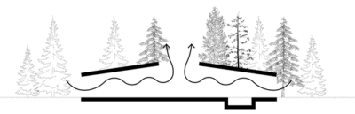 米长的全景滑动窗,将客厅空间打开向森林,并将房屋与花园融为一体。可移动的墙体和开阔的屋顶使光线和空间的交互变得无缝,同时也提供了自然通风——功能类似于帐篷。在空气流动中,风将森林的声音和气息带入室内。