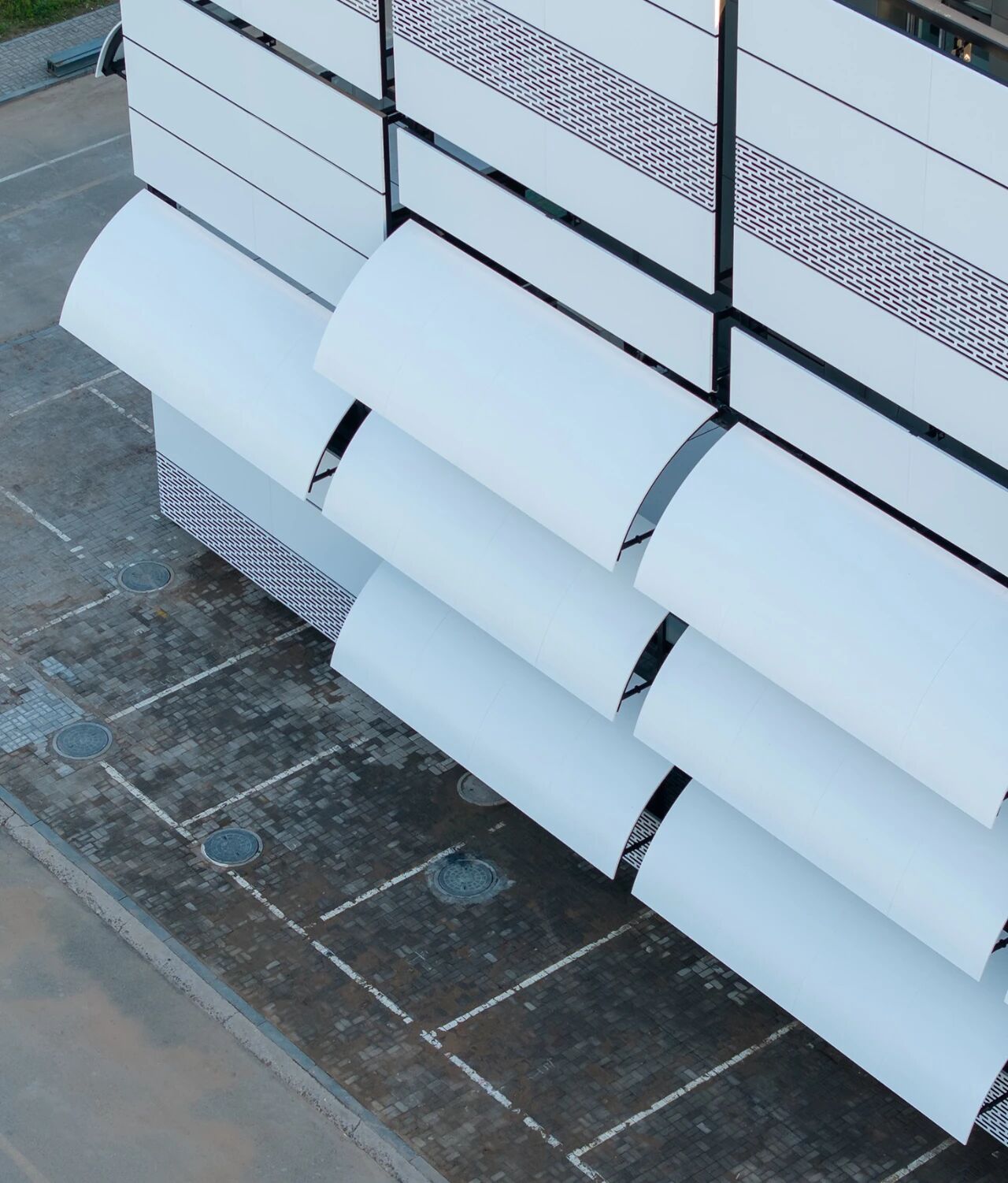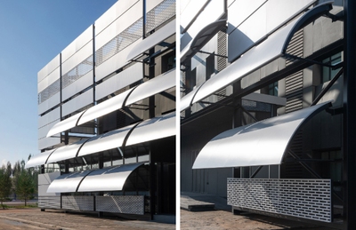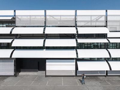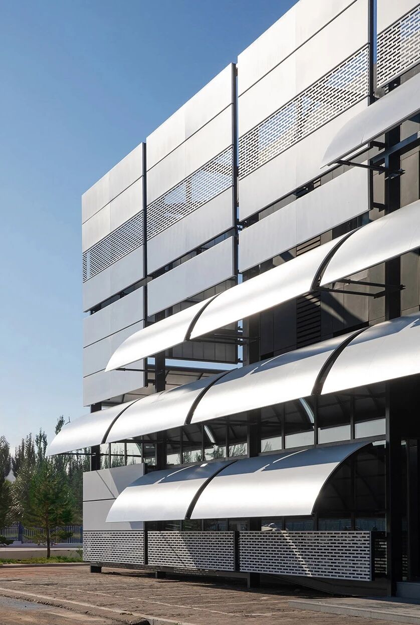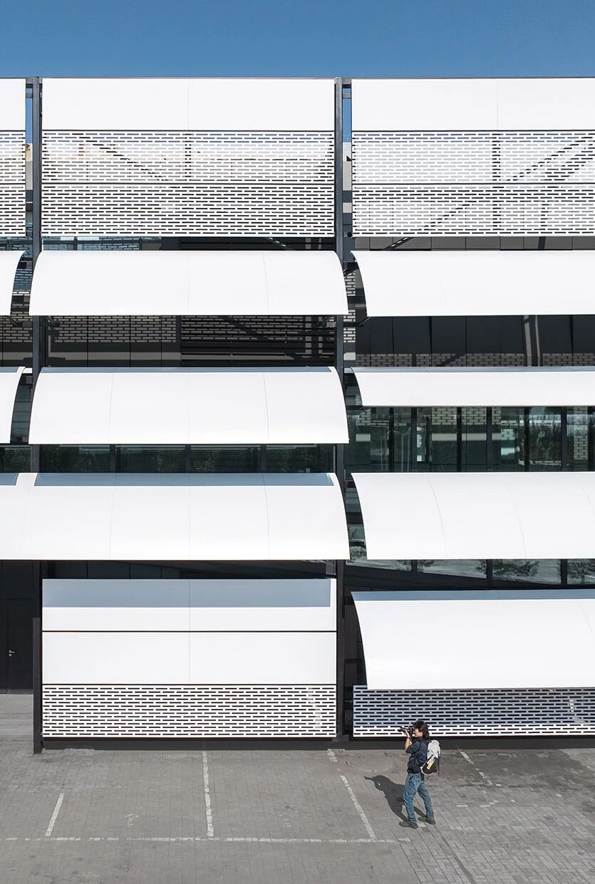 精心布置的穿孔铝板在保持立面完整性的同时,确保了室内外的视觉连通