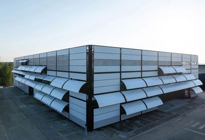 我们的改造在保留建筑本体的同时,赋予其全新的建筑表皮。模块构件化的立面系统犹如一件充满精密工业质感二的外衣,将原有建筑温柔包裹。在这层新立面之后,我们嵌入了一道通往二层主入口的斜坡通道,重新定义了建筑的抵达体验。