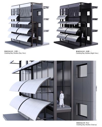 米的标准化模块重新划分建筑尺度,通过修长的面板线条在视觉上减轻了建筑的体量感