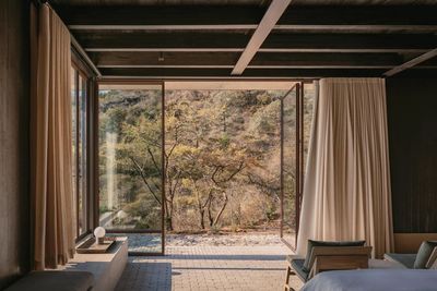 建筑围绕中央碎石庭院展开布局,庭院由主住宅与客房附属建筑共同围合而成,成为迎接访客的第一空间。这一设计手法毫无张扬之感,尽显含蓄。