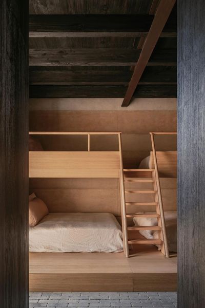 在走廊的另一端,一座有顶露台俯瞰着泳池旁一处依靠雨水补给的水景设施。同样采用平屋顶设计的客房建筑,以两间卧室及附属功能区完善了中央庭院的周边布局。