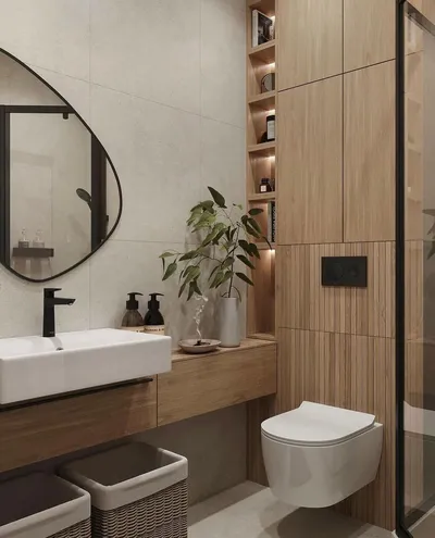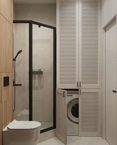 卫浴间的设计更是将功能与美观拉满,木元素的加入柔化了空间,洗衣柜与储物柜的组合,在满足收纳的同时,让洗衣动线更加流畅。