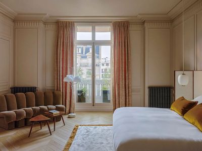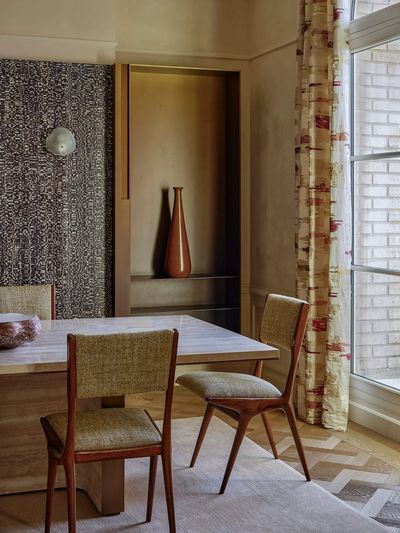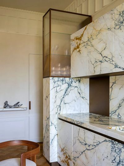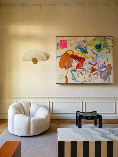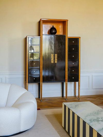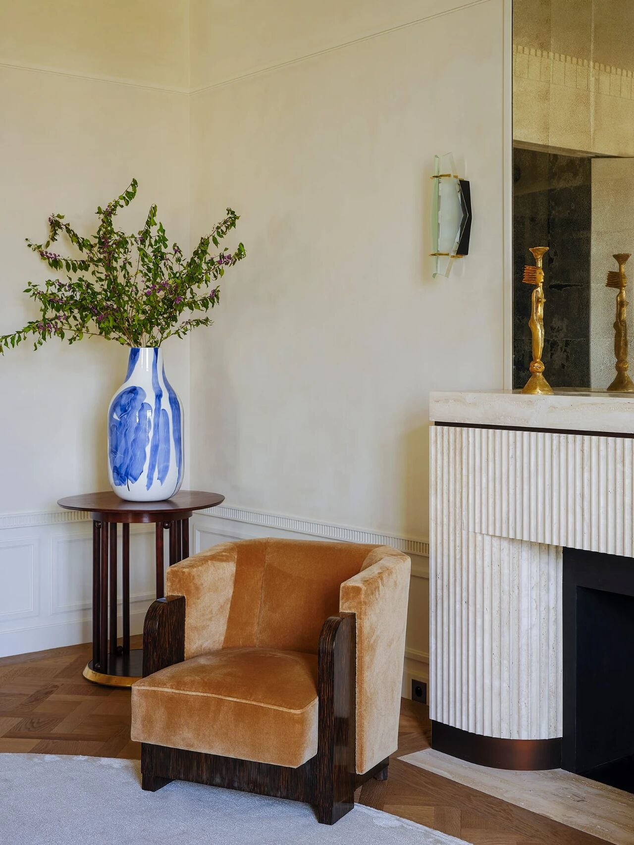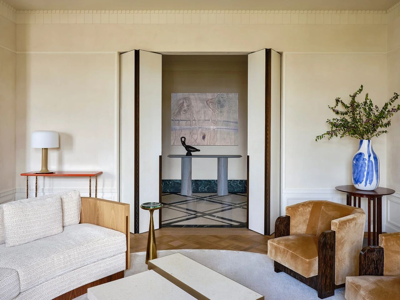 Throughout the apartment, bespoke pieces by Parente sit alongside vintage furniture from the likes of Michel Dufet, Pierre Jeanneret, and Pierre Paulin. Contemporary art from Sue Williams, Anne Collier, and Olivier Millagou adds another layer to the sophisticated interior narrative. The result is a luxe home that honours its Art Deco heritage through a contemporary spirit.