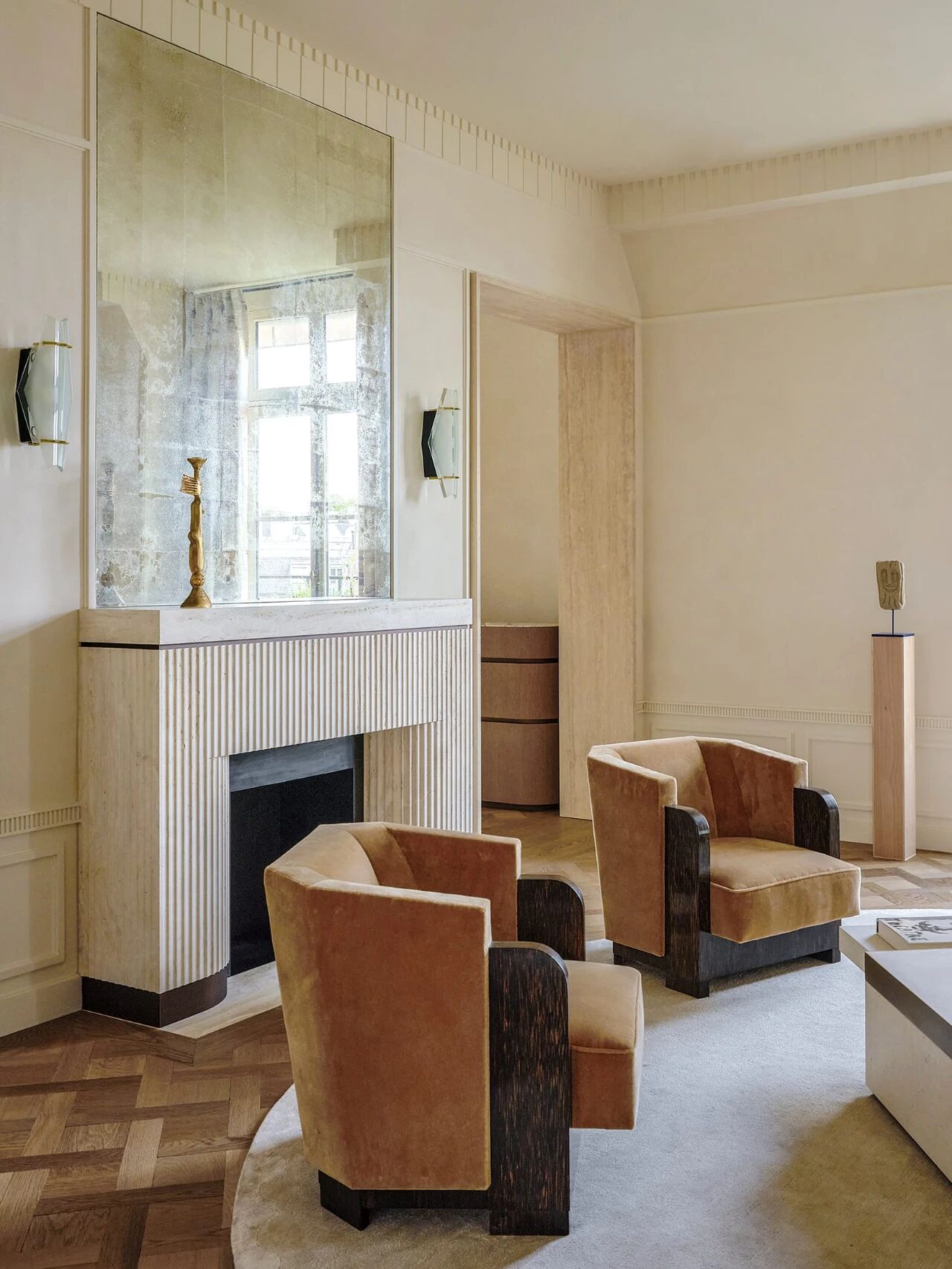 “The most challenging aspect of bringing this project to life was to have the feeling that things have always been there, timeless and respectful of the context, without falling into the pastiche of a false style,” explains Rodolphe. The design needed to adapt to a family’s needs while creating spaces that transition from formal reception areas to intimate private zones.