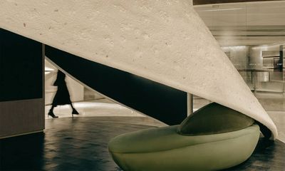 除了空间结构 ,色彩张力、几何轮廓与材质肌理也被一同编织进空间体验,将人造建筑融入自然的神韵里。整个空间采用柔和的暖色基调,暗色调的半围合空间则形成深海洞穴般的视觉留白,吸引人一探究竟。