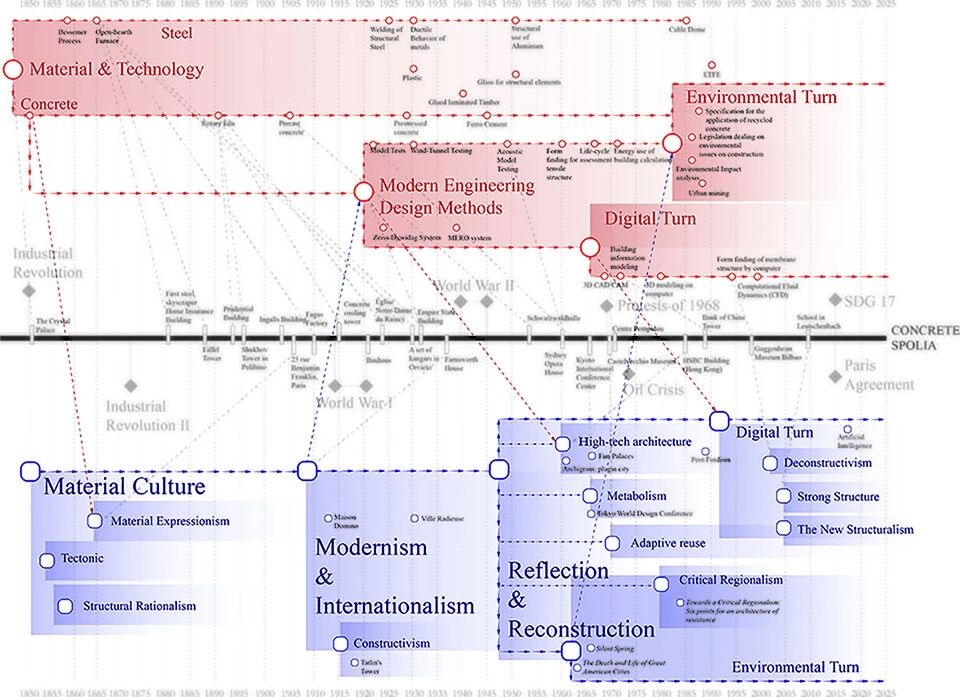 当前工程领域的可持续实践,往往注重材料性能与结构属性,而对设计潜力探讨较少:传统的降级再利用(downcycling)逻辑——将混凝土废料粉碎再用作骨料——囿于工程领域的语境下,耗时过长且收益有限,无论是工程抑或设计领域,都正在面临可持续建造领域下的“环境转型”。