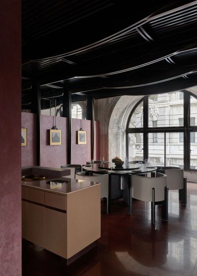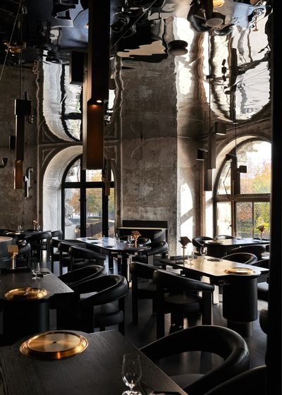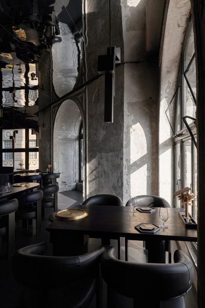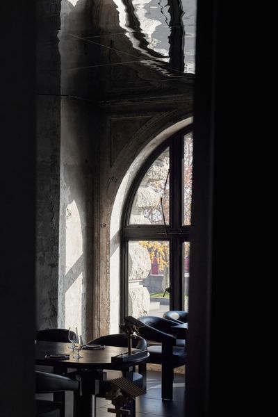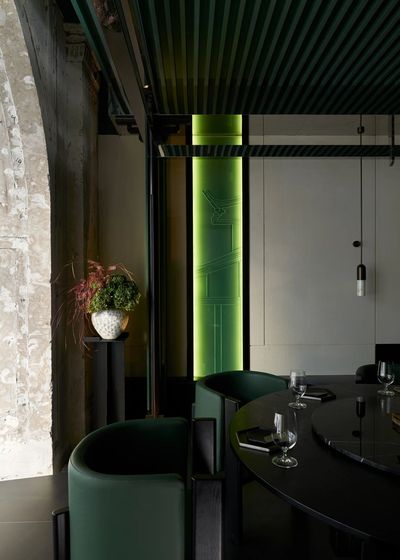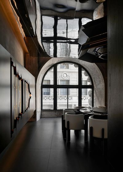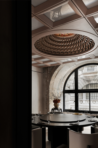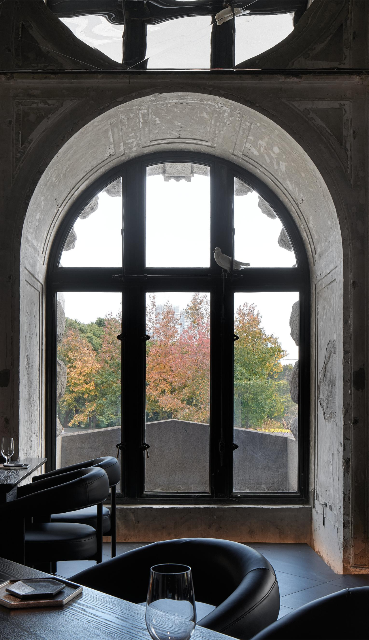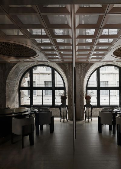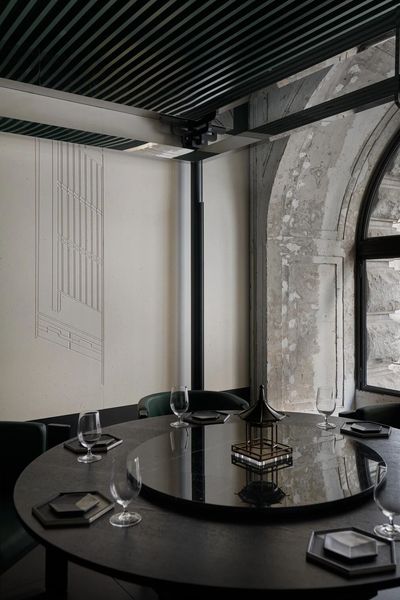 设计师保留了公馆新古典主义的拱形窗结构,让海派韵味依旧保留在餐厅氛围之中。
