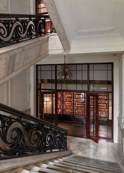 转入大堂,一座传统大殿在眼前出现。百年罗斯福公馆临江而坐,大堂内飞檐轻盈舒展,斗拱雄浑庄严,灰砖墙面沉淀着时光的肌理,与窗外现代都市景致,构成一幅跨越时空的建筑画卷。