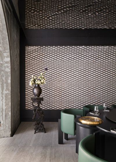 用瓦片作为装饰,是中国园林美学的传统技巧。包间墙面的瓦片堆叠,形成黄浦江的波浪纹理,将城市与江水的气息融入空间。